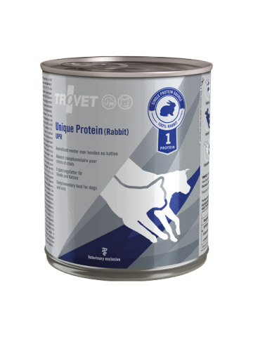 Препорачливо е да се консултирате со ветеринар пред да ја користите оваа диета. Препорачан период на употреба: 4 недели. Ако симптомите на нетолеранција исчезнат, додавајте TROVET Balance (минерална мешавина) дневно. Во отсуство на симптоми на нетолеранција, Unique Protein (Rabbit) може да се користи доживотно, во комбинација со TROVET Balance. Критично болните животни, животните во раст, животните во последната фаза од бременоста и животните во лактација бараат додавање на TROVET Balance од првичната употреба на Unique Protein.